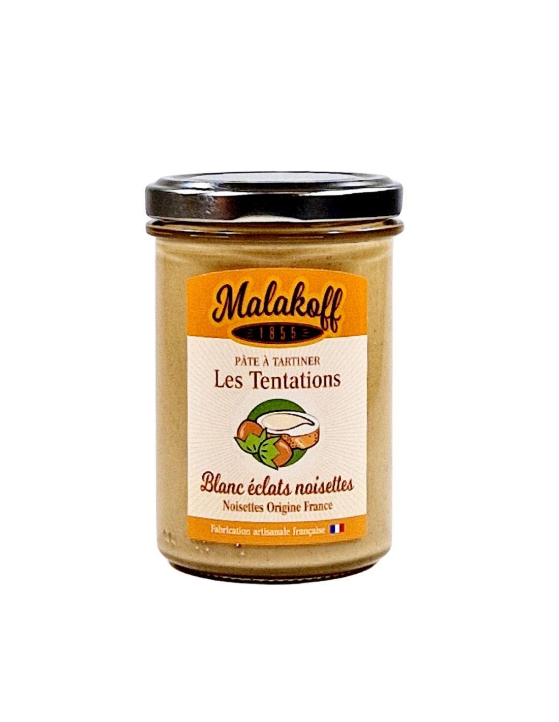 Proposez à vos clients la pâte à tartiner Malakoff Blanc éclats Noisettes : une recette unique qui associe la douceur du chocolat blanc au croquant irrésistible des éclats de noisettes. Fabriqué artisanalement en Lozère, elle allie authenticité et gourmandise, idéale pour enrichir votre sélection de produits tendances.
