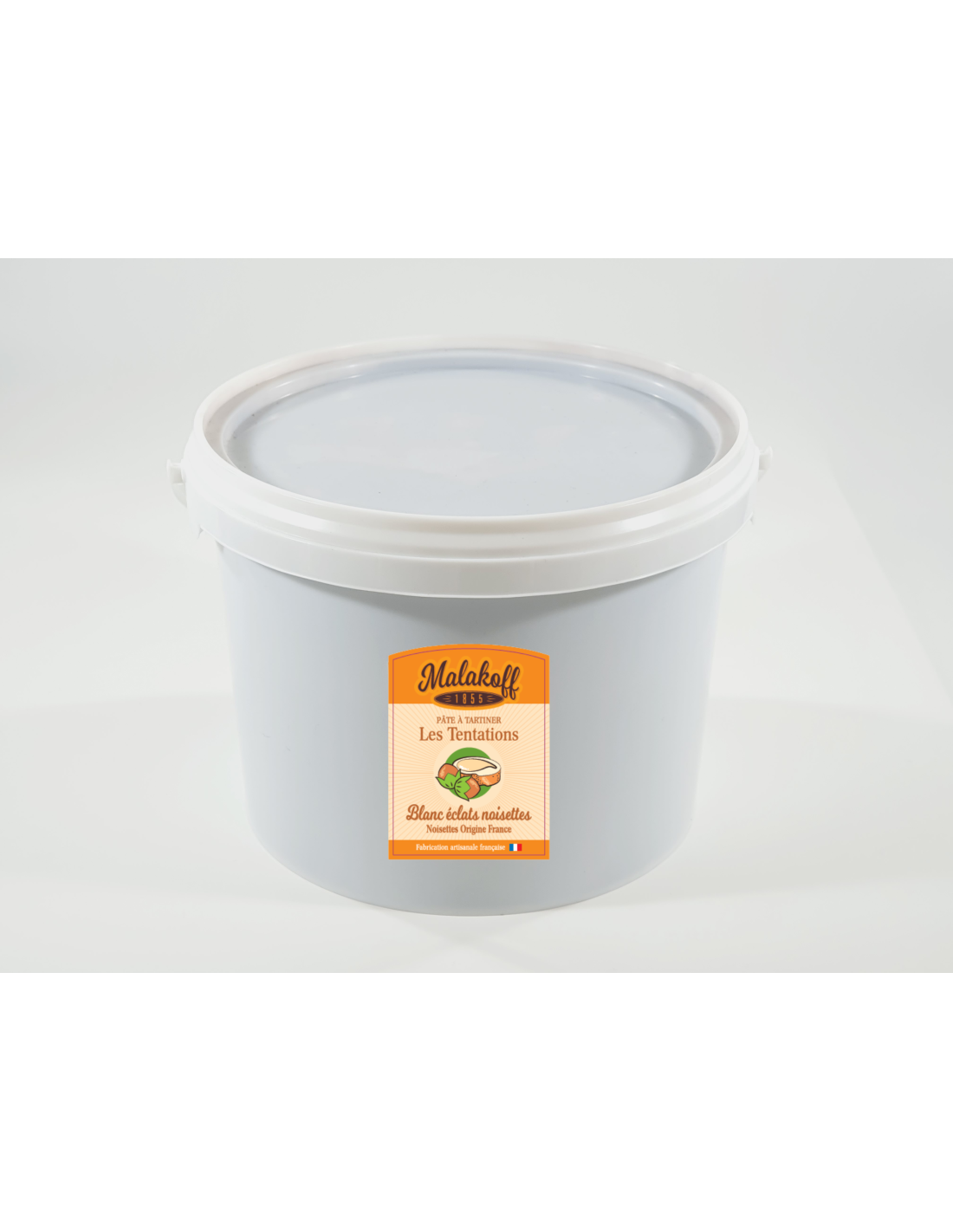 Attirez les gourmands avec la pâte à tartiner Malakoff blanche et ses éclats de noisettes françaises croquantes. Une alliance parfaite entre onctuosité et croustillant. Une recette artisanale qui séduira les amateurs de plaisirs raffinés. FORMAT ADAPTÉ À VOS PRÉPARATIONS.