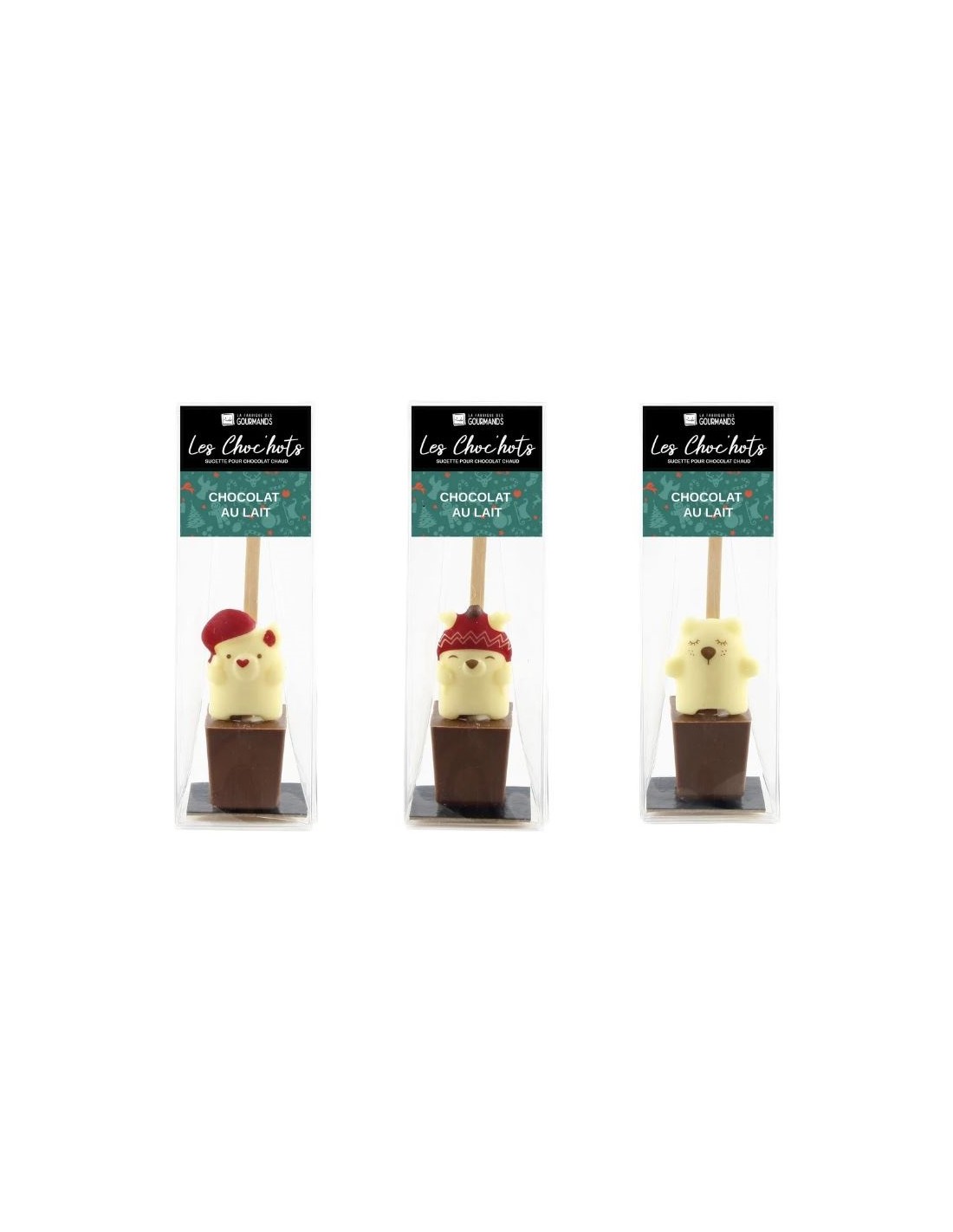 Offrez à vos clients un chocolat chaud de qualité artisanale avec notre **Choc'hot lait à tremper**. Décoré pour Noël, ce bâtonnet de chocolat pur beurre de cacao se plonge dans du lait chaud pour une expérience gourmande. Idéal pour les fêtes, il attire l'œil et réchauffe les papilles. Une vente facile pour des moments réconfortants.