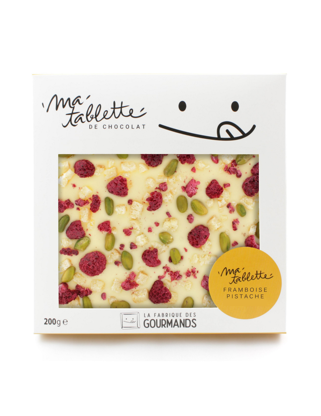 Tablette chocolat blanc 200g. - Pistaches Framboises