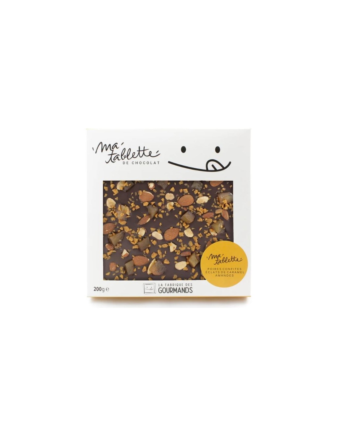 Un chocolat qui attire l'œil et fait saliver ! L’association du chocolat au lait fondant, des éclats d’amandes croquantes et de la douceur fruitée de la poire crée une tablette raffinée et gourmande. Une recette artisanale pur beurre de cacao, fabriquée en France, qui séduira vos clients en quête d’authenticité. Un incontournable pour dynamiser vos ventes !