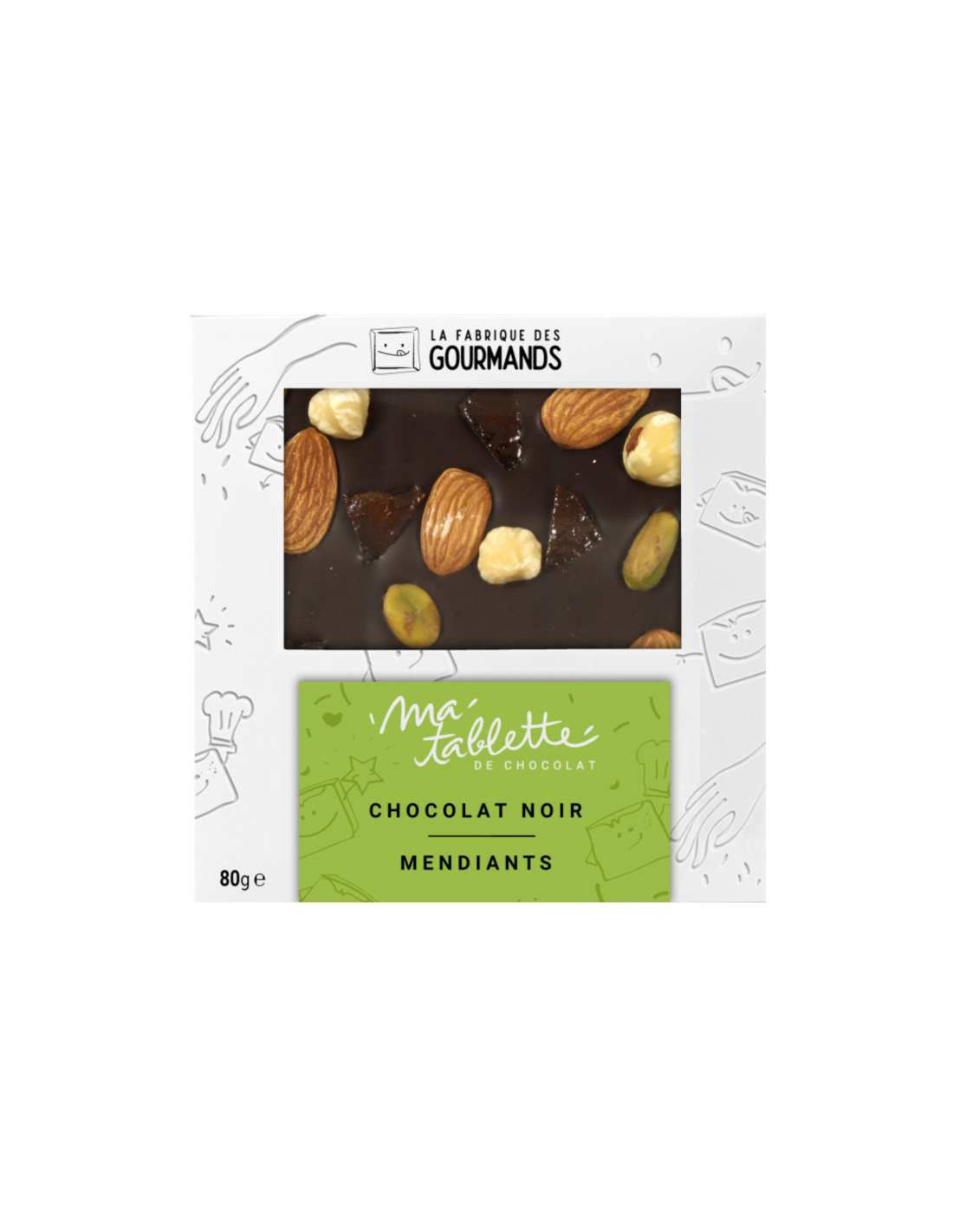 Valorisez votre offre avec notre Tablette Chocolat Noir 80g - Façon Mendiants. Une sélection premium, faite main par nos artisans dans la tradition chocolatière française, associant l'intense chocolat noir à un mélange gourmand de fruits secs et noix. Parfaite pour les connaisseurs cherchant à offrir une expérience gustative unique et riche en saveurs. Cette tablette représente l'alliance parfaite entre qualité artisanale et délices culinaires, un incontournable pour élever votre assortiment.