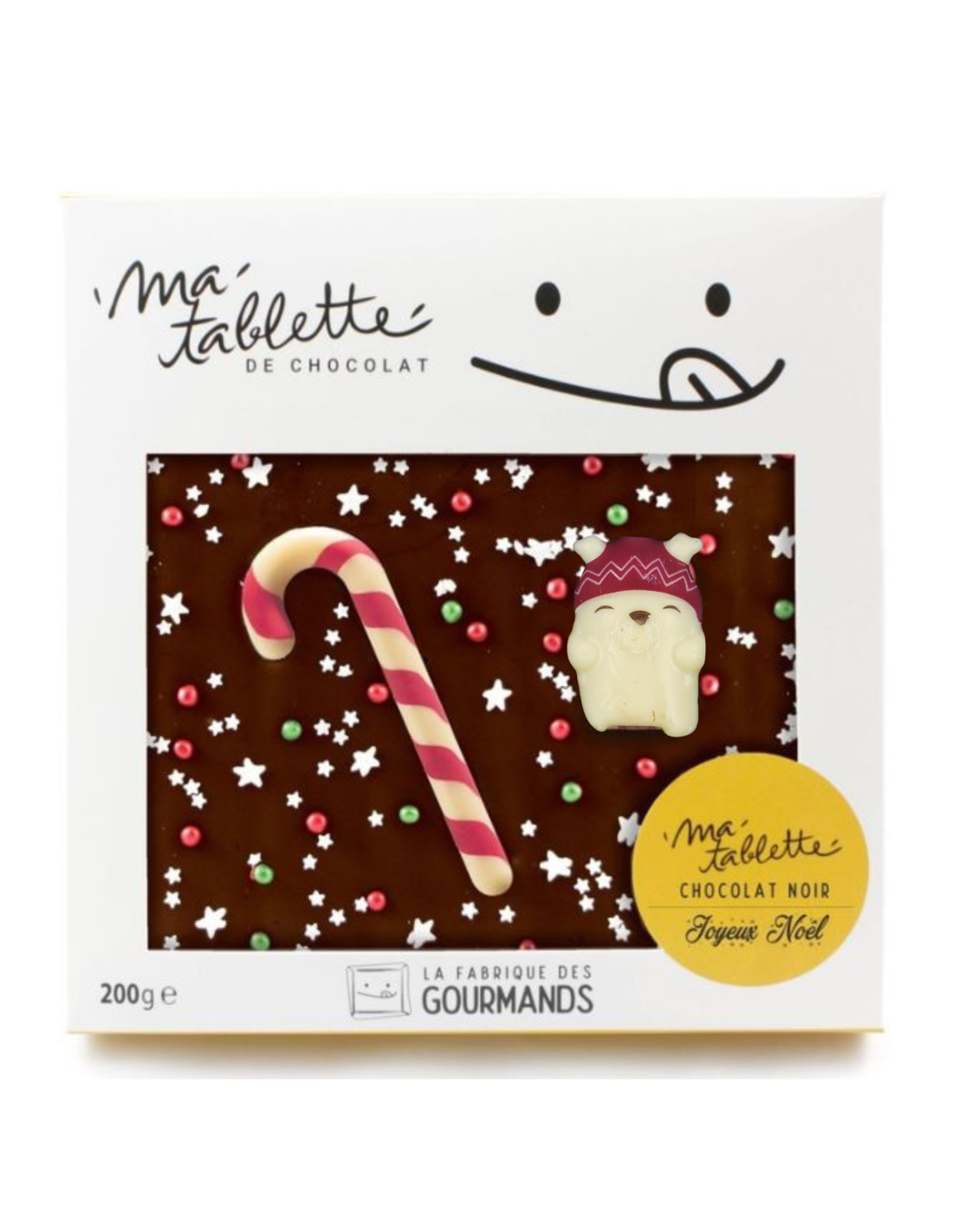 Proposez à vos clients une expérience gourmande avec notre tablette de chocolat noir 200g pur beurre de cacao, décorée d’un sucre d’orge en chocolat blanc. Une alliance festive et artisanale qui marie intensité et douceur. Fabriquée en France, elle séduira par sa qualité et son originalité, idéale pour les fêtes ou pour offrir une touche raffinée à vos rayons.